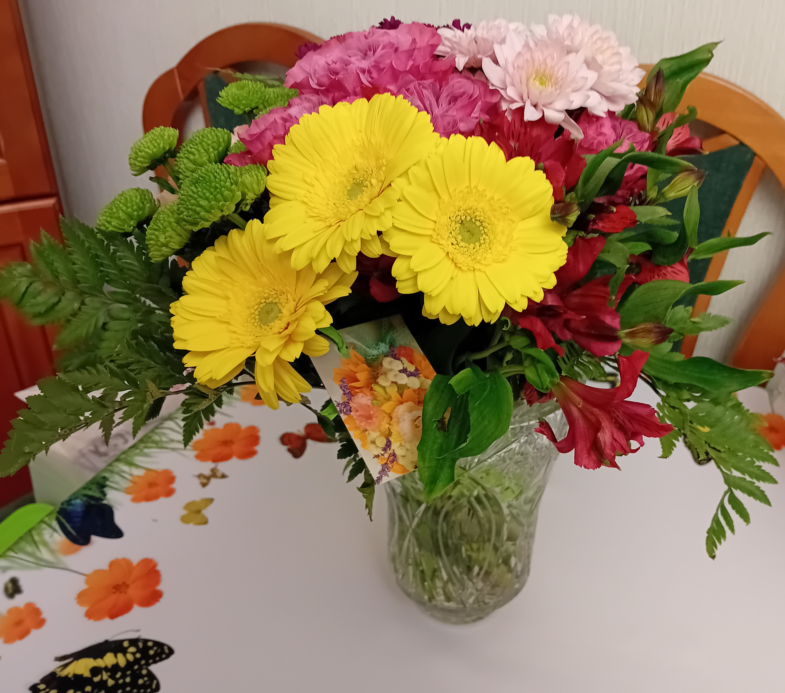 Piękny bukiet świeżych kwiatów. Zamówienie dostarczone na czas. Polecam.