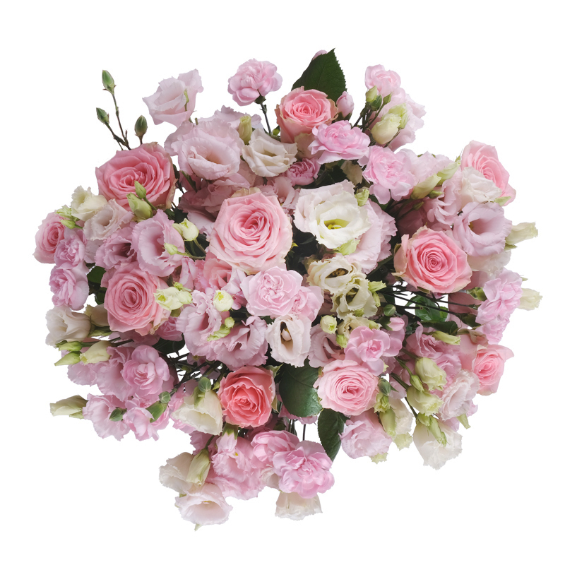 Ten bukiet to kwintesencja uroku – delikatne eustomy, eleganckie róże i urocze goździki. "Połączenie idealne", które pięknie uzupełni osobista dedykacja.