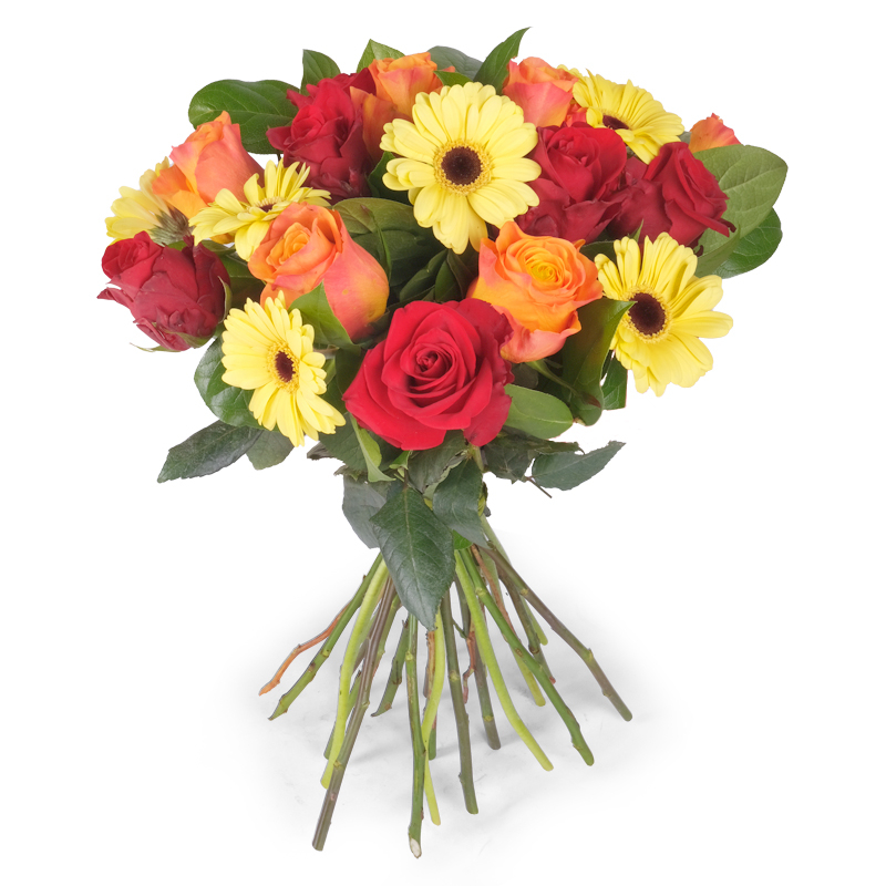 Bukiet „Złote Szaleństwo” to propozycja dla osób kochających życie. Róże i gerbery tworzą wyjątkowo pogodną całość. Każdy kwiat został dobrany z myślą o radości i lekkości. To kompozycja, która przyciąga uwagę i poprawia humor, promienieje optymizmem!